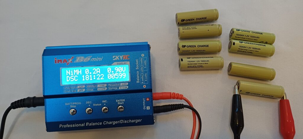 So today, ~25 years later, new cells were fitted and we measured the capacity of the original cells. Discharging at 200mA to a cutoff voltage of 0.9V, the original cells tested at 599mAHr…. about 40% of their original nameplate capacity. The new cells fitted are from Lidl and are rated at 2500mAHr.